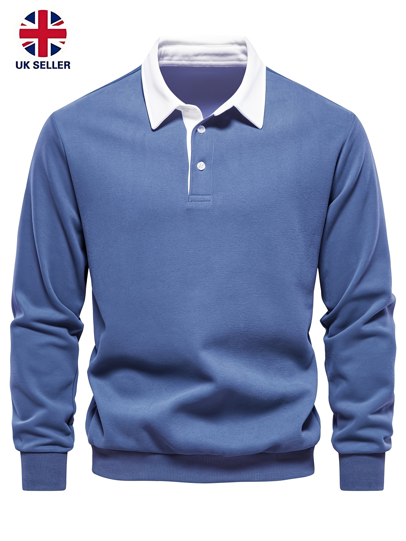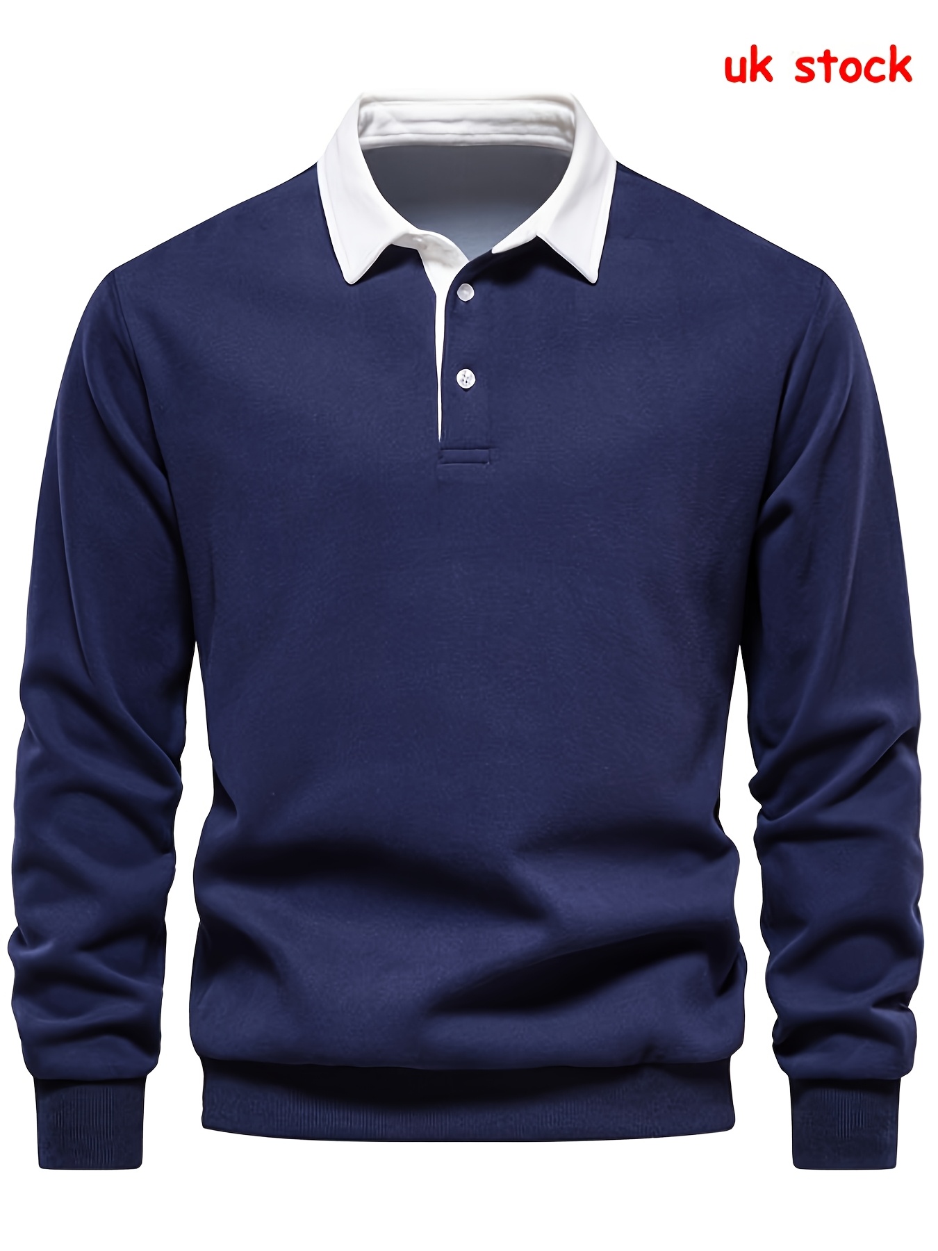 Men's Polo Collar Sweatshirt Shirt - Loose Long Sleeve Solid Color, Button-Down, Casual Pullover Top