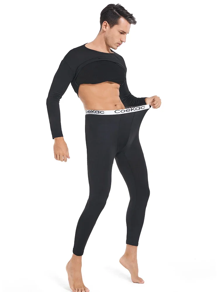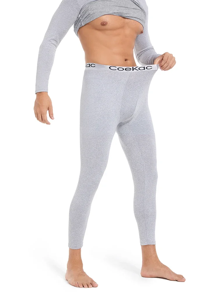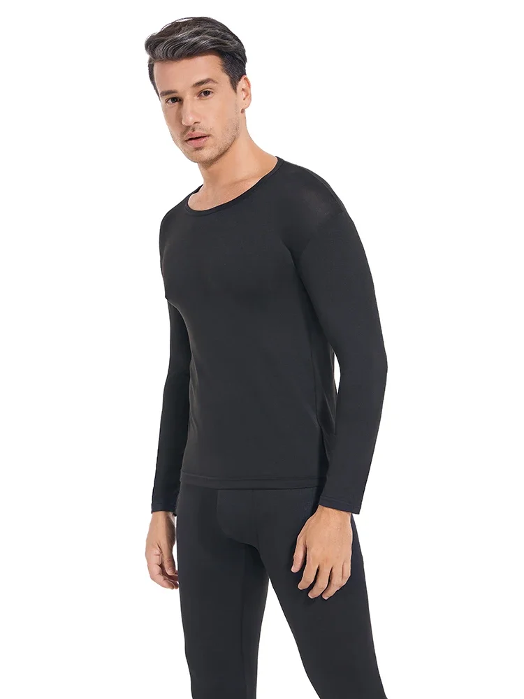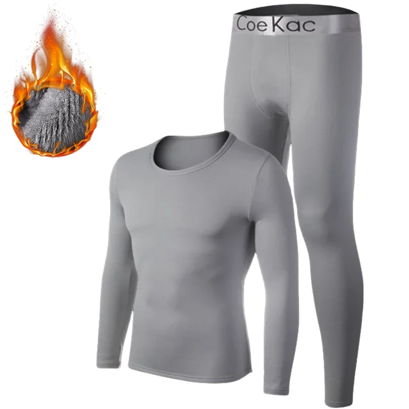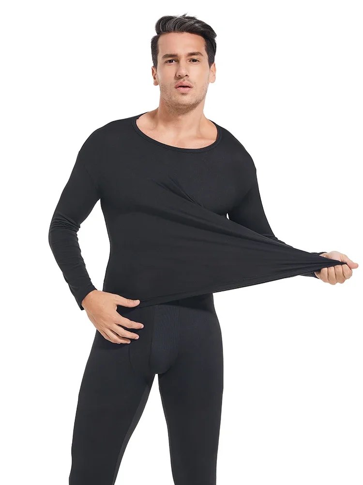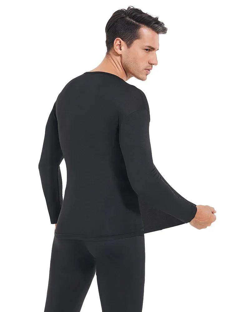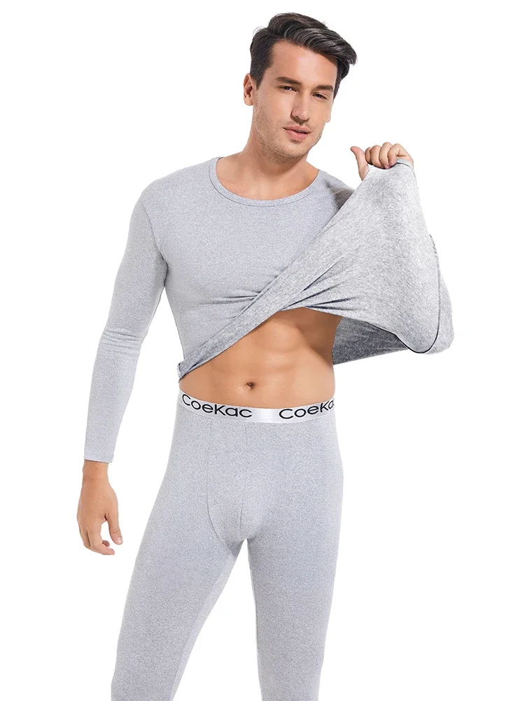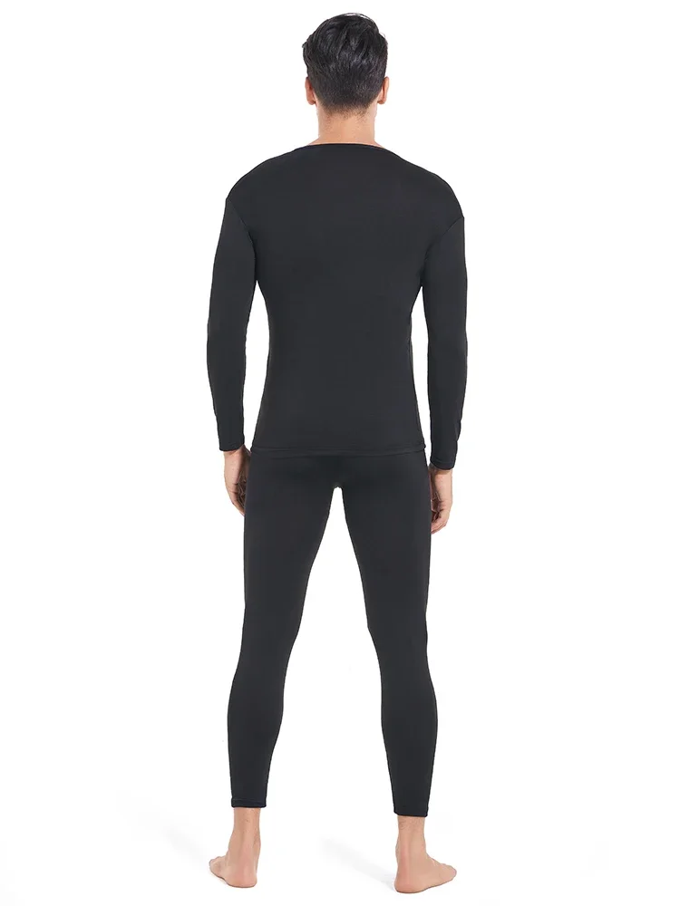 Mens Underwear Winter Long Sleeve Thermal Underwear Thick Fleece T-shirt Round Neck Slim Bottoming Shirt and Pants White
