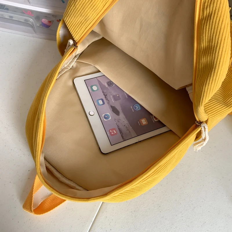 1.Superior Corduroy Material: Crafted from high-quality corduroy, this kawaii aesthetic backpack offers exceptional softness, durability, and ease of care. It's designed to provide a comfortable carrying experience while maintaining its premium quality.