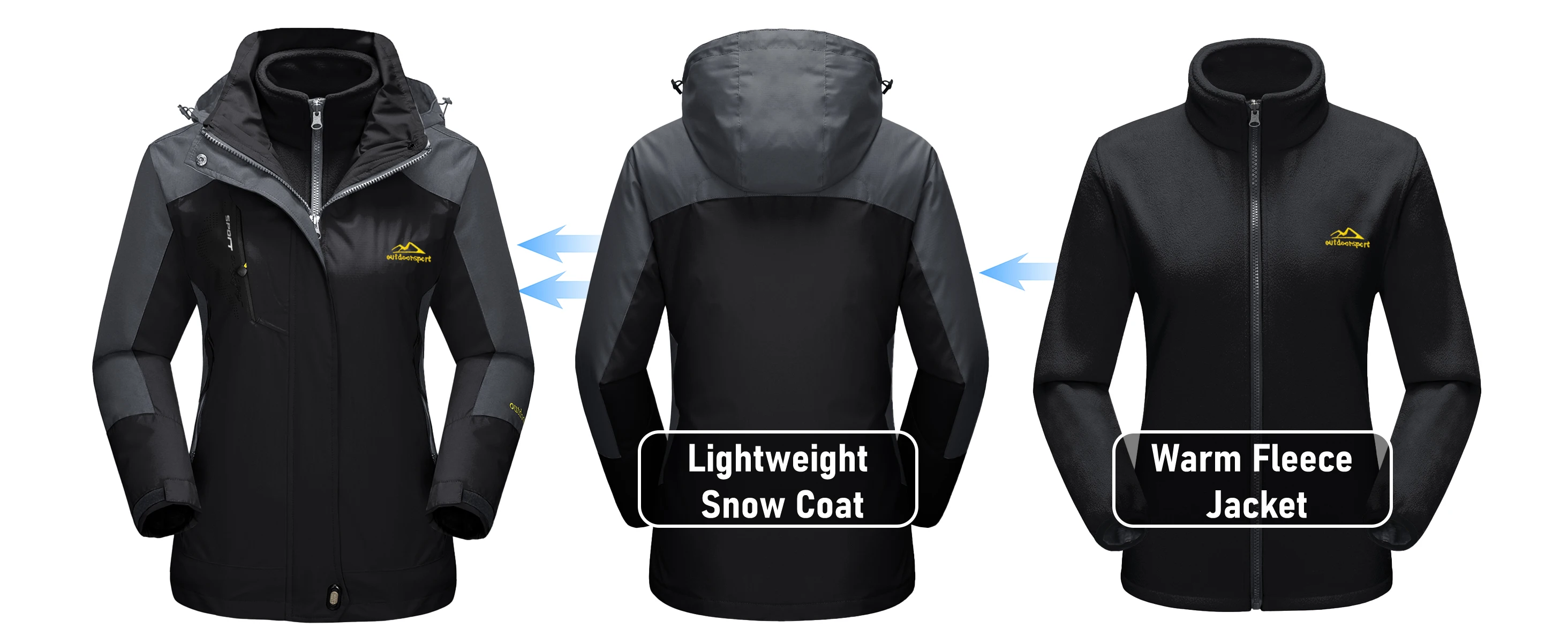 1x 3-IN-1 Jackets as picture show for women.