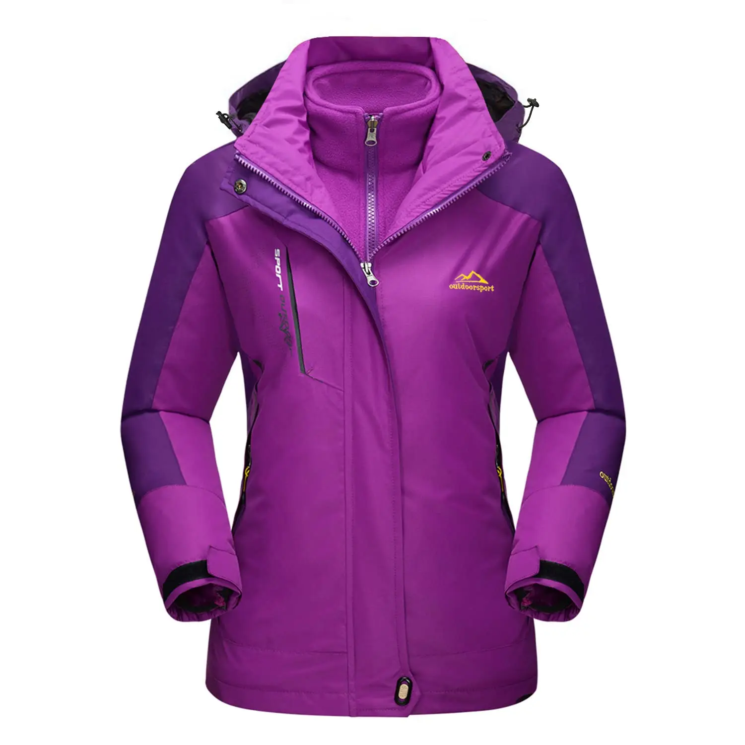 Women's 3-IN-1 Jackets Waterproof Fleece Jacket Outdoor Windproof Skiing Snowboarding Coat Hiking Jackets Parka Hodded Coats